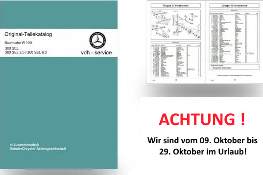 Achtung wir sind vom 09. Oktober bis 29. Oktober im Urlaub. Sprich der Versand der Teilekataloge, die nach dem 08. Oktober bestellt werden,kann frühestens am 30. Oktober realisiert werden.