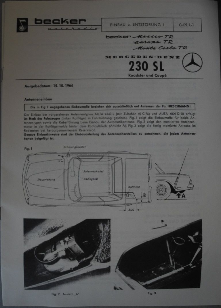 Broschüre Becker Einbauanleitung Pagode 230 SL