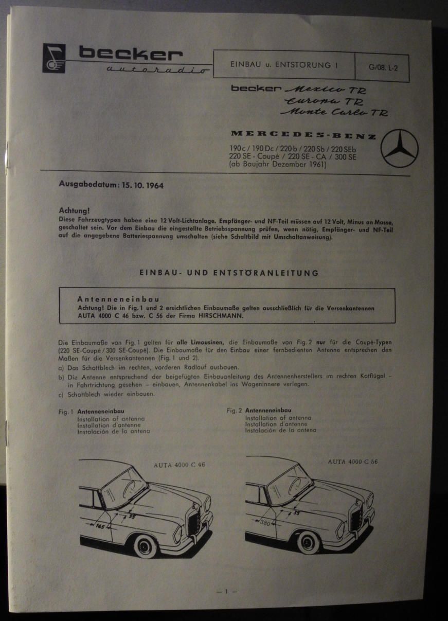 LIT1027: 12 seitige Technische Information Einbau- und Entstöranleitung Becker Mexico TR - Europa TR - Monte Carlo TR