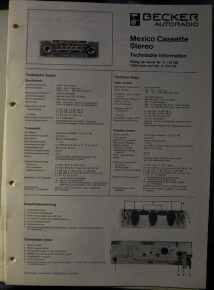 LIT1022: 12 seitige Technische Information Becker Mexico Cassette Stereo späte Ausführung ab Gerät 110150