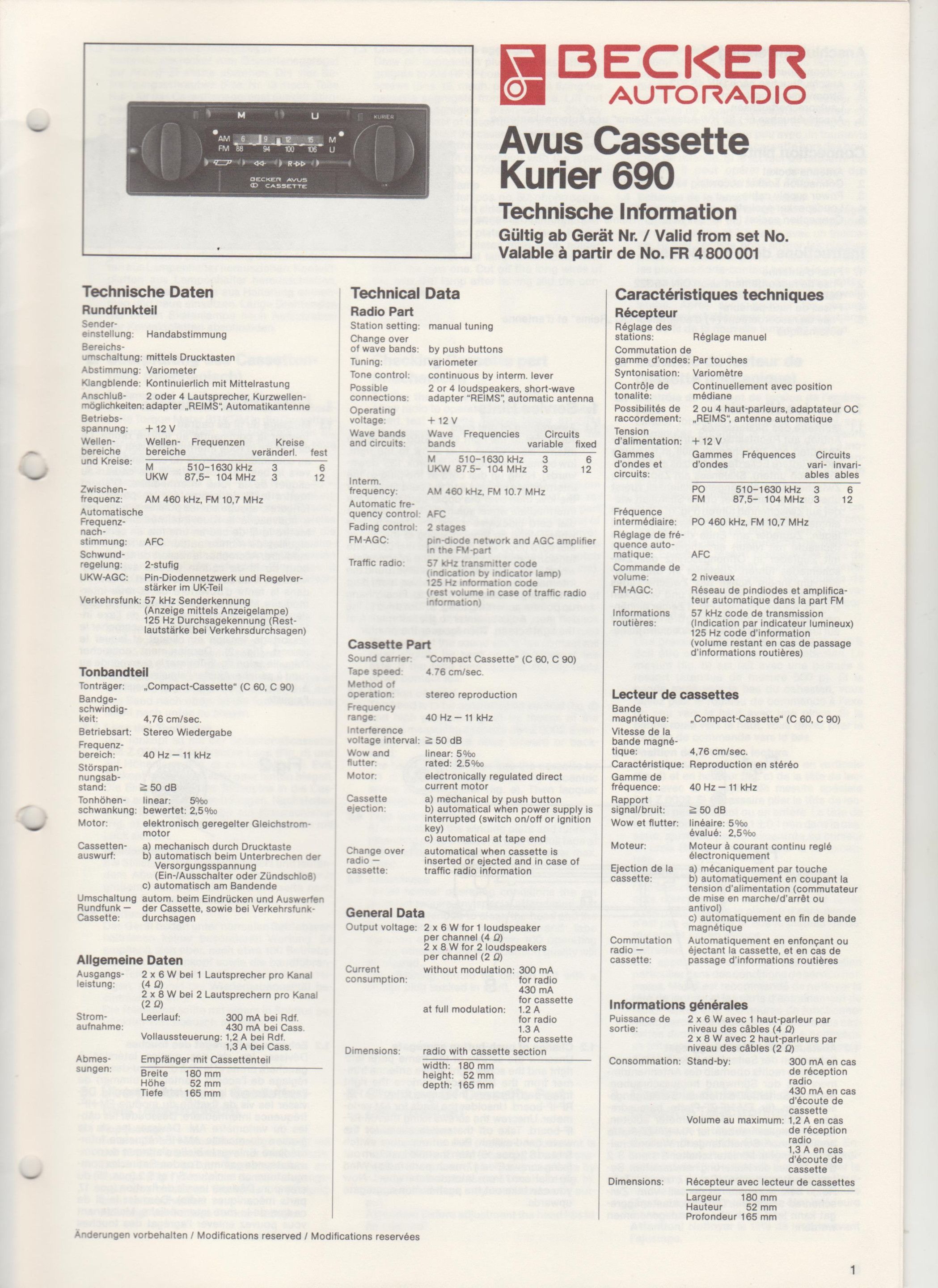 LIT1048: 22 seitige Technische Information AVUS Cassette Kurier 690