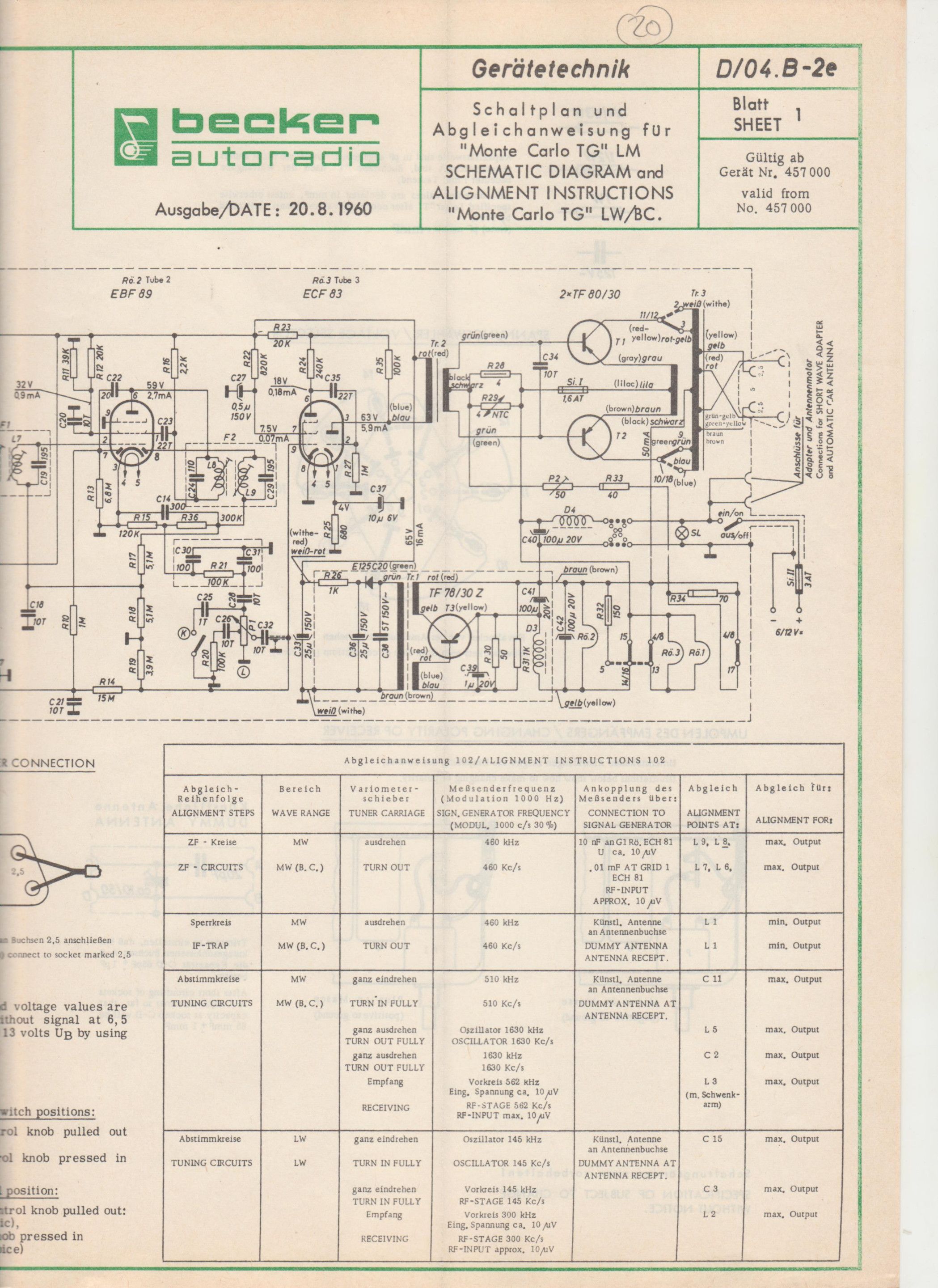LIT1060: 4 seitiger Schaltplan und Abgleichsanweisung "Monte Carlo TG"