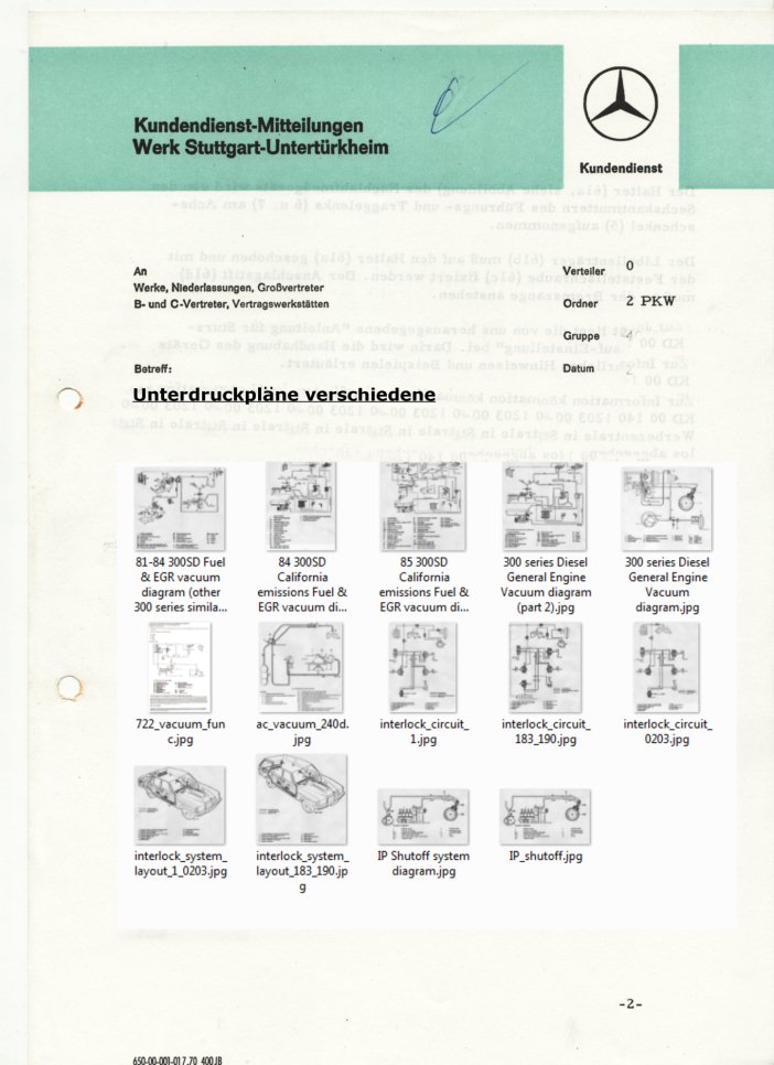 Unterdruckpläne W 116 und W 124 auf englisch 24 Seiten